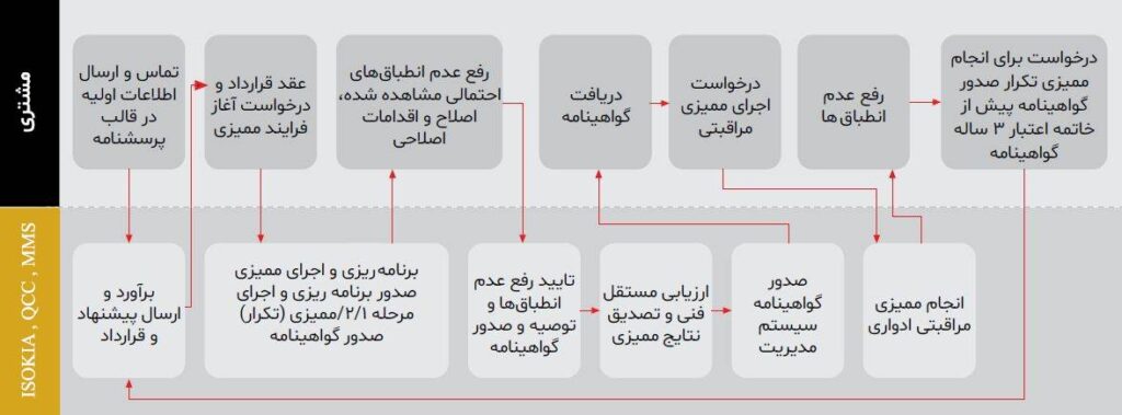تمامی گواهینامه های صادر شده توسط مرکز ایزوکیا توسط سر ممیز های CertificateBody های معتبر تحت امتیاز IAF همچون QCC و MMS تایید میگردد و در سایت اعتباردهی جهانی iafcertsearch میباید قابل رهگیری باشد .